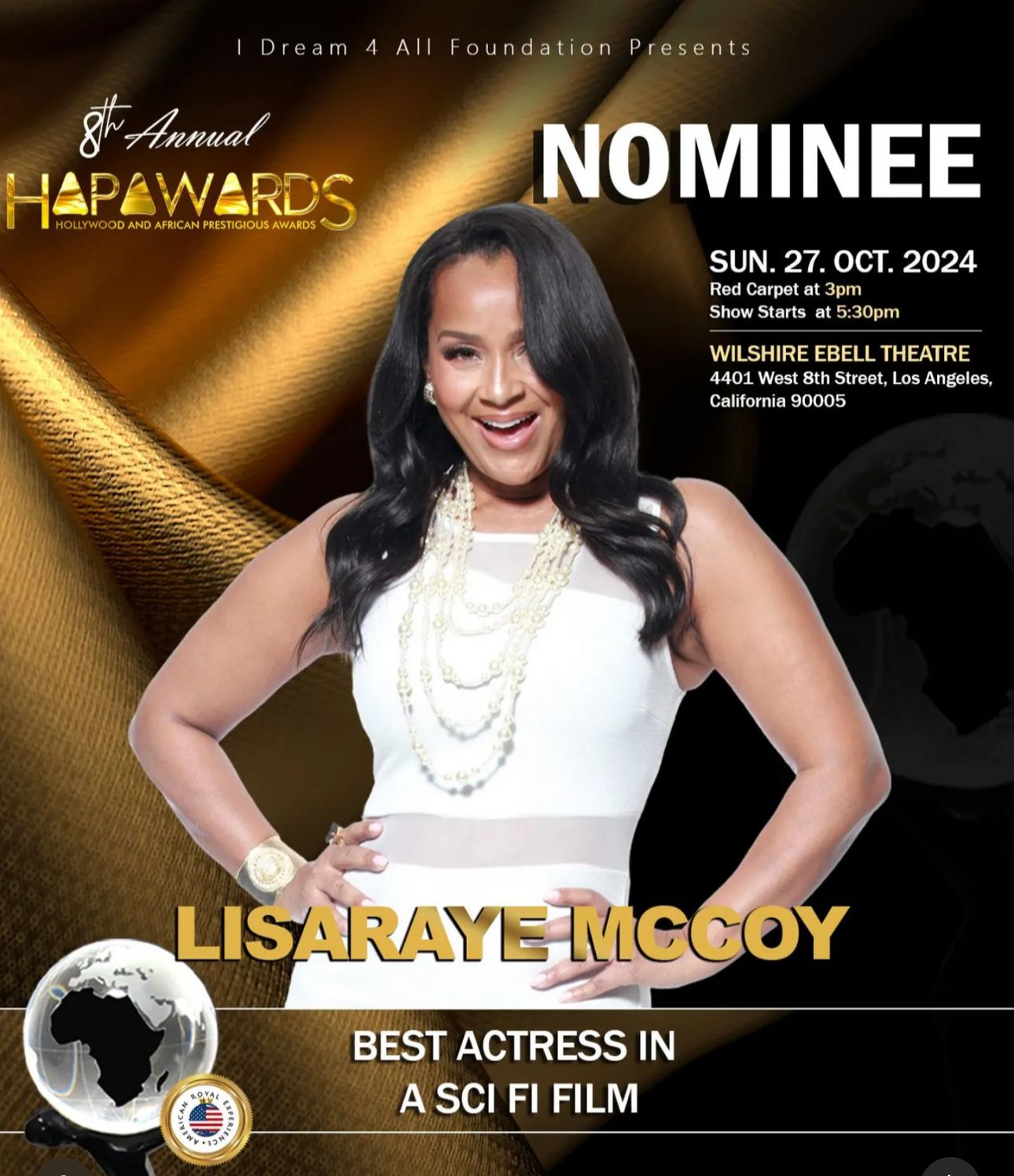 The excitement surrounding the 8th Annual HAPAWARDS continues to grow, with the announcement that Lisaraye McCoy is among the esteemed nominees for Best Actress in a Sci-Fi Film.